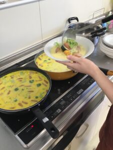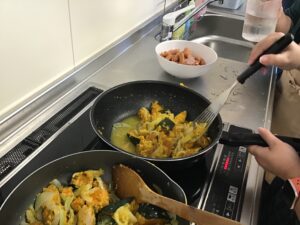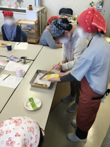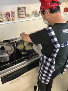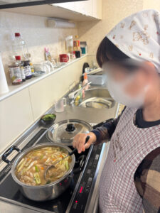 夏の暑さと打って変わって、ひんやりとした日が多くなった今月、皆さんで一緒にかぼちゃのシチューを作りました。市販のルーを使わずに、牛乳・小麦粉ベースで調味料を入れたルーは、どこか懐かしい優しい味わいに仕上がりました。皆さんからも「市販のルーで作るよりもしょっぱくない」といった感想もあり、体にも心にも温かいシチューとなりました。