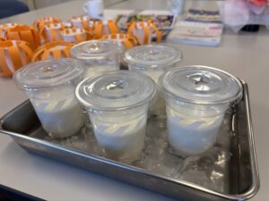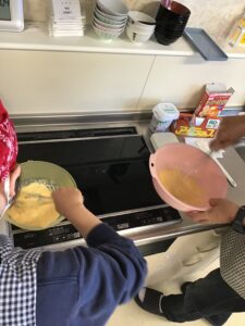 かんたんスイーツづくりでは、練乳牛乳プリンを作りました。