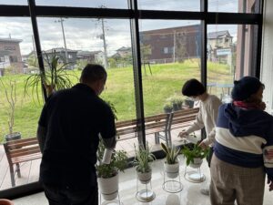 外来患者さんや院内散歩に来た患者さんがほっこり休まる場を提供するためにも、デイケアメンバーさんで大切に育てていきたいと思います。