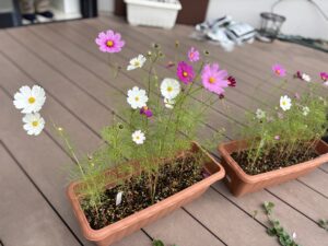 秋の園芸プログラムで、コスモスと大根を育てています。