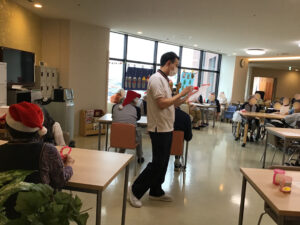 各病棟でクリスマスソング合唱、ビンゴゲーム、ケーキ飲食、写真撮影を行いました。