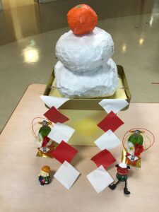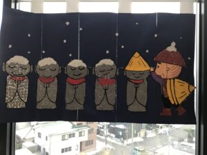 雪が降り始めた頃、日本昔話の話題になり5階病棟で傘地蔵の壁紙を作ることになりました。