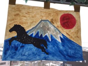 3階病棟で初日の出が見える富士山に馬が駆けていく、飛躍をイメージした壁紙を作りました。