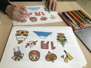 患者さん4名で手分けをして絵具で色付けをしましたが、思ったよりも迫力が出て完成した作品を見た他の患者さんからも歓声が上がる程でした。「来年はいいことがありそうだね。」「思ったより良くできたね。」との感想をいただきました。