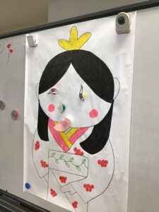 春やひなまつりにちなんだクイズを、ペアで解いていくレクリエーションや、福笑いなどを行いました。